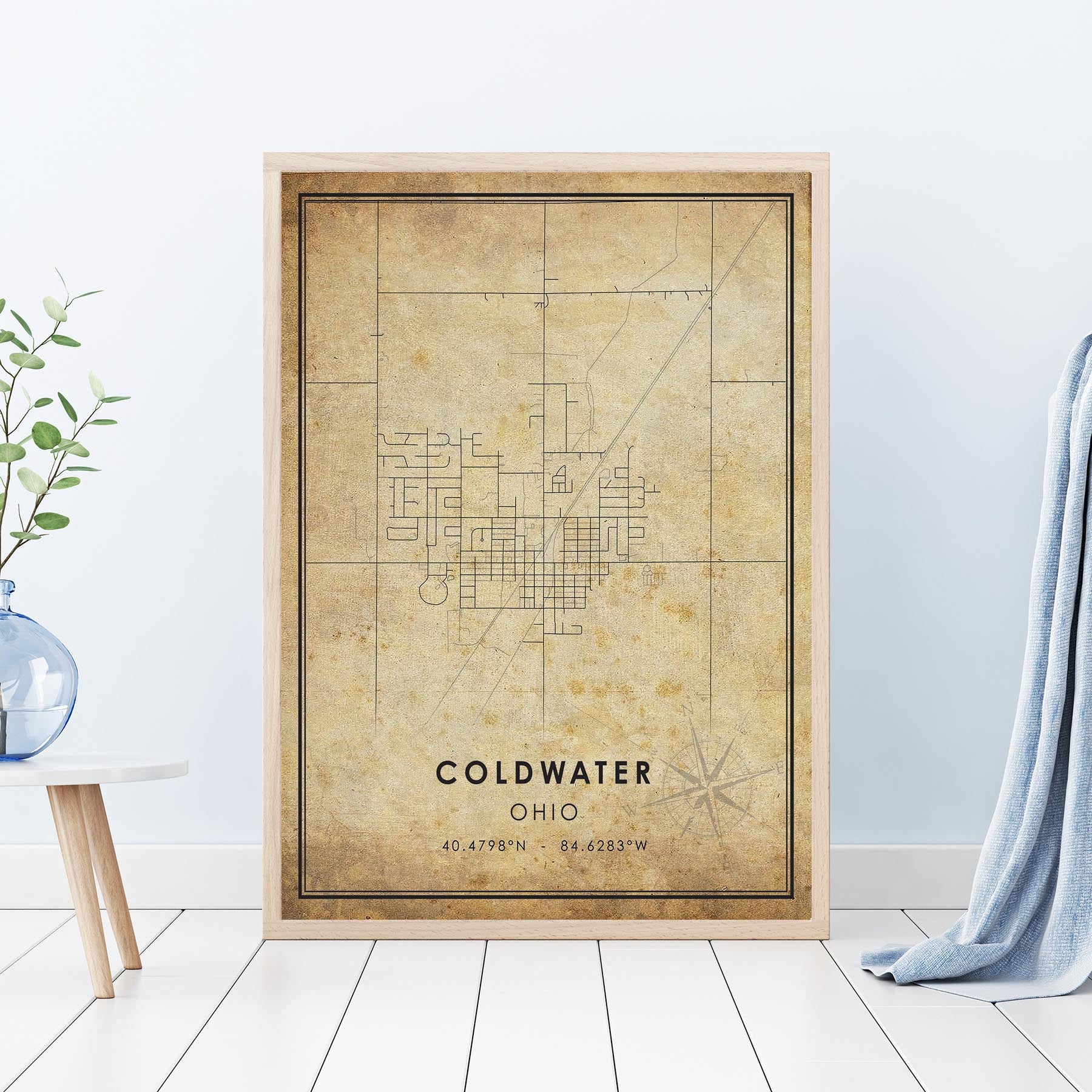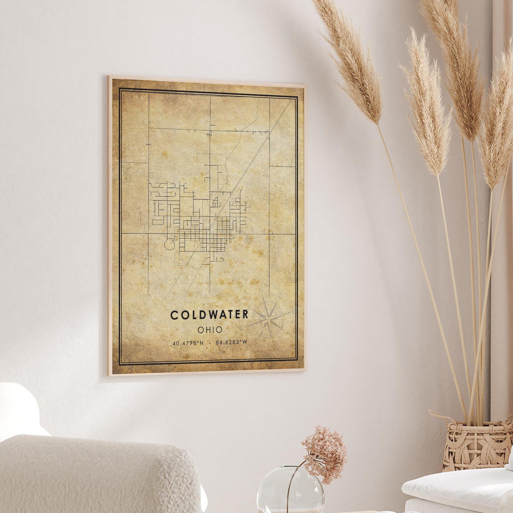 Coldwater, Ohio Vintage Style Map Print