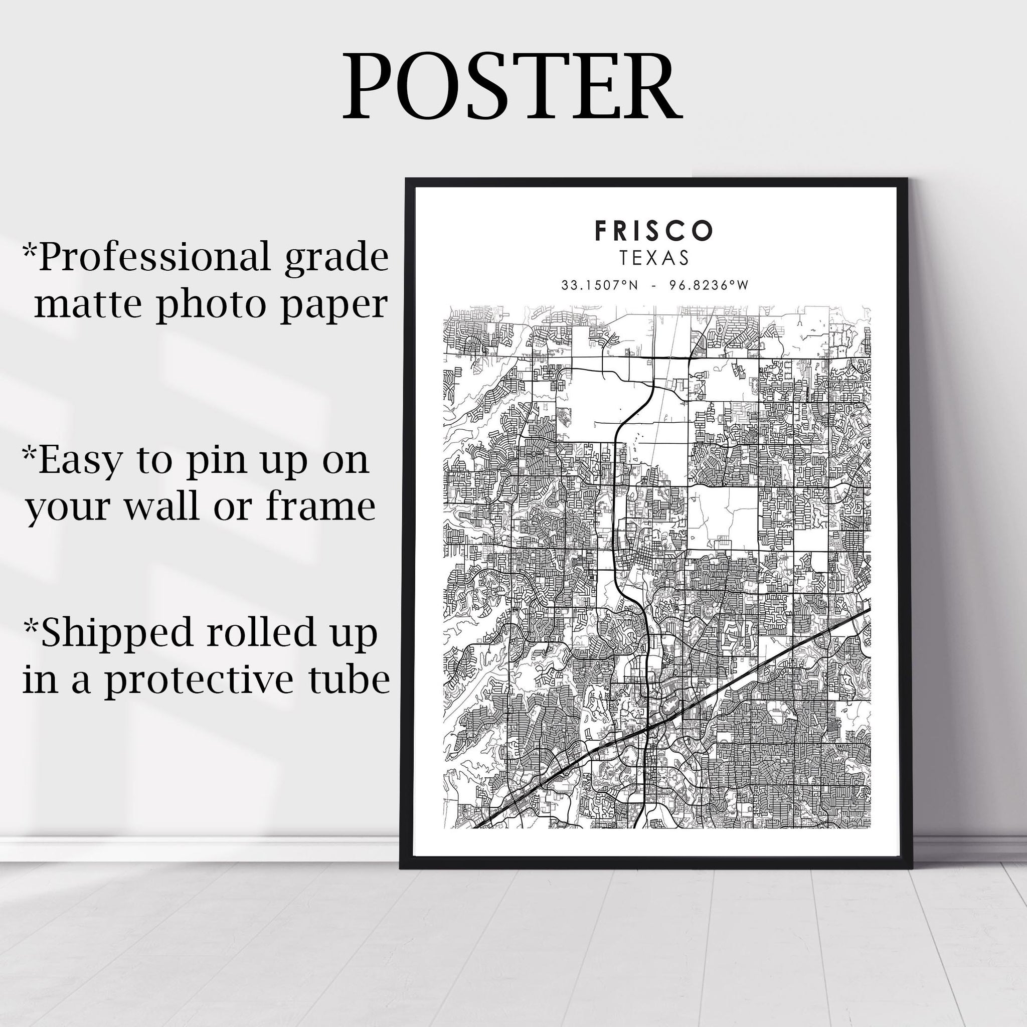 Frisco, Texas Scandinavian Map Print