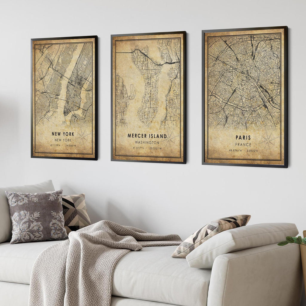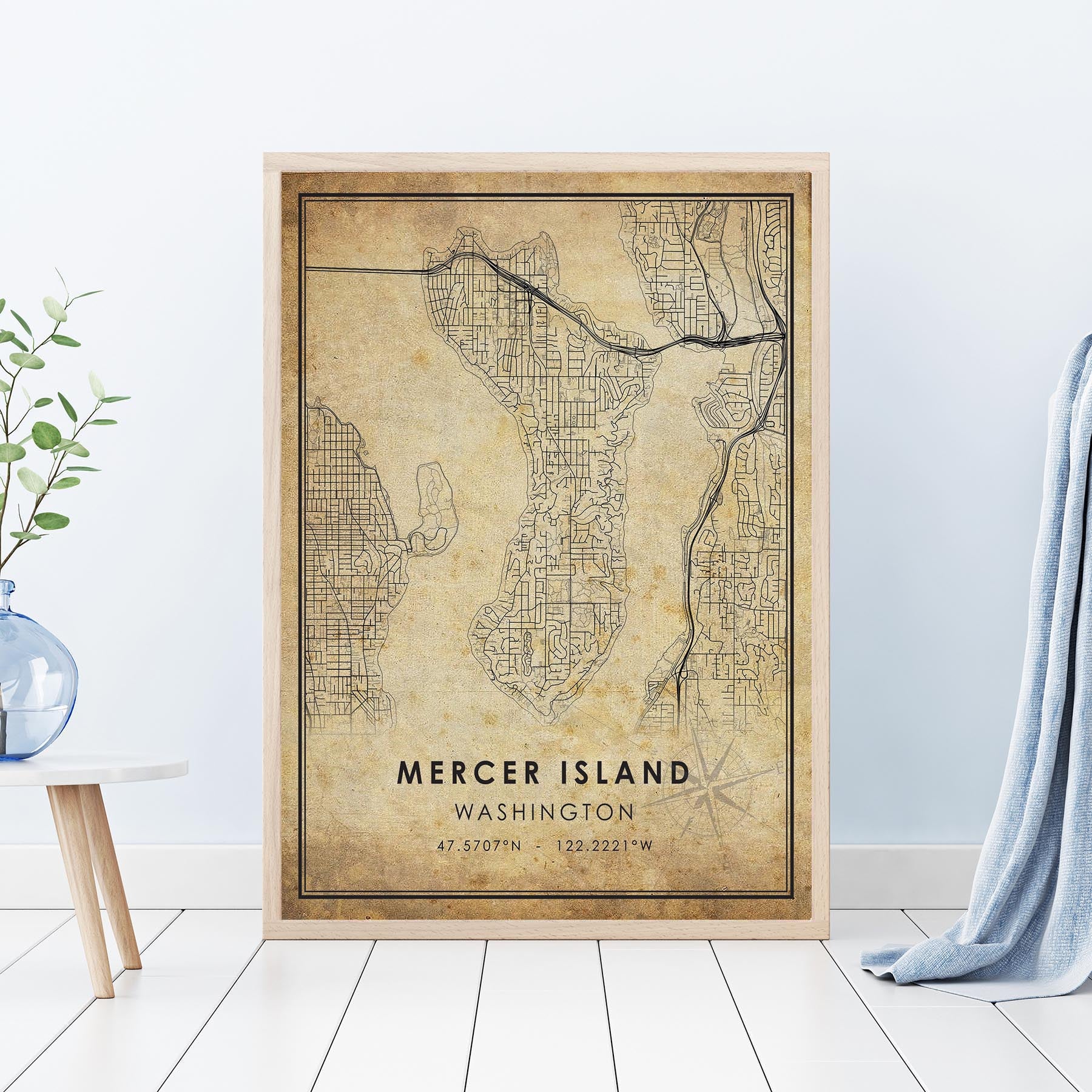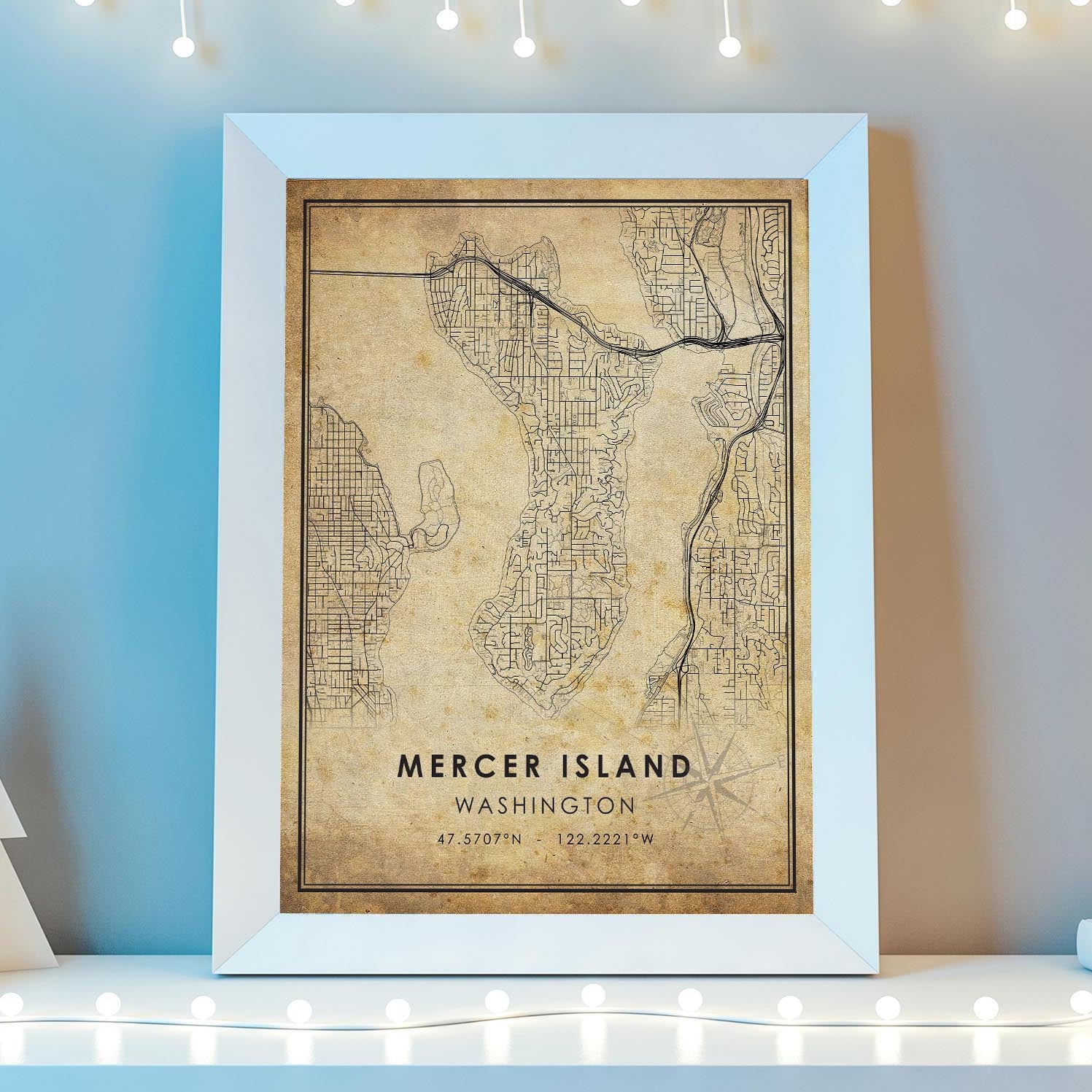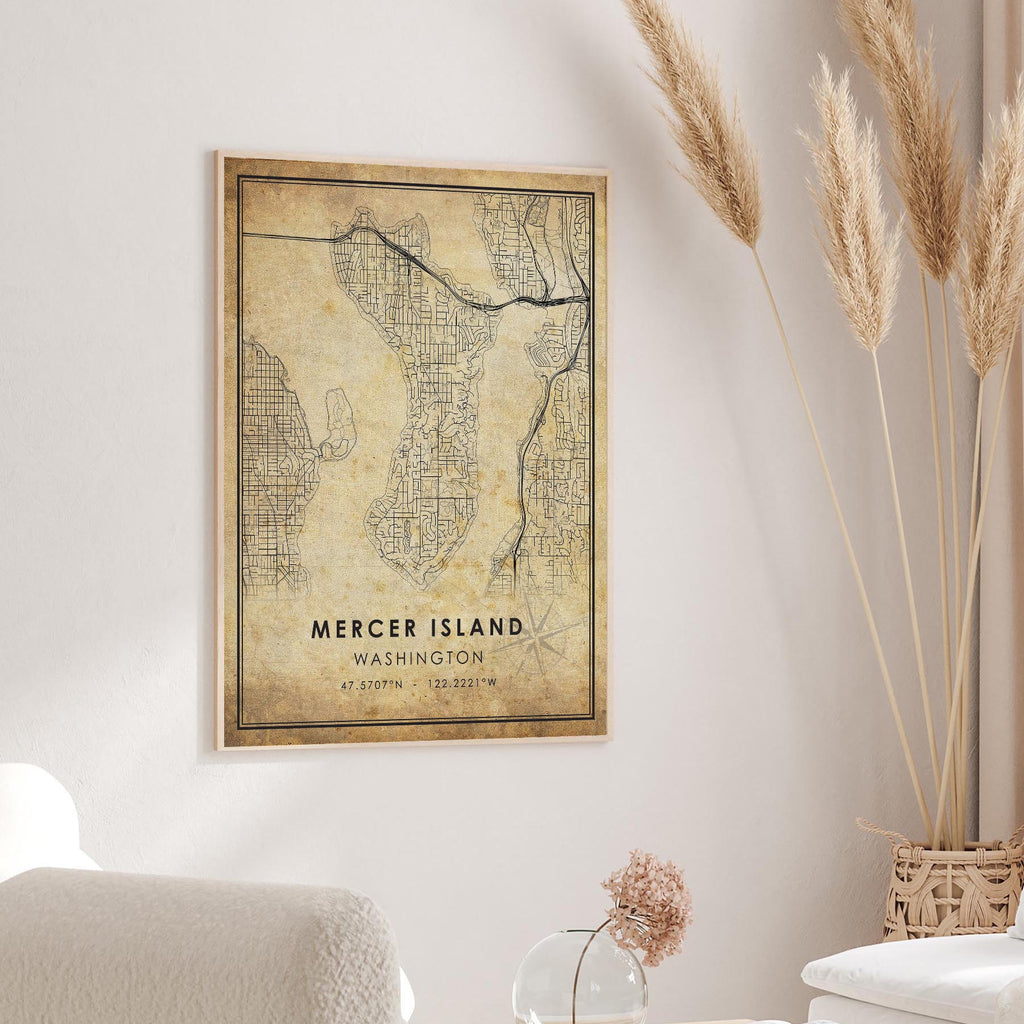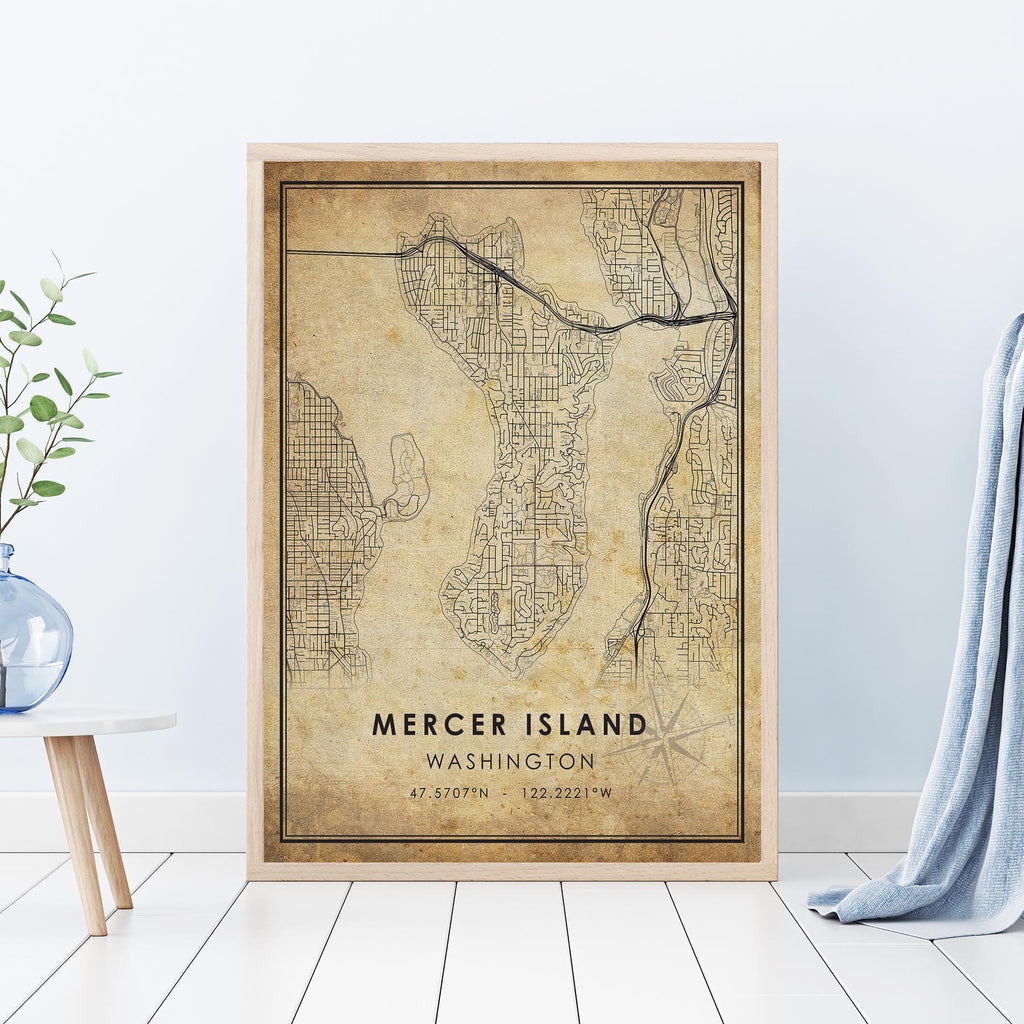 Mercer Island, Washington Vintage Style Map Print