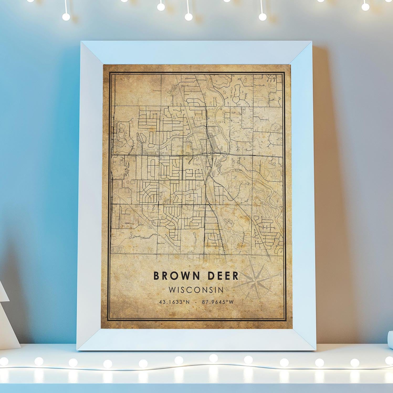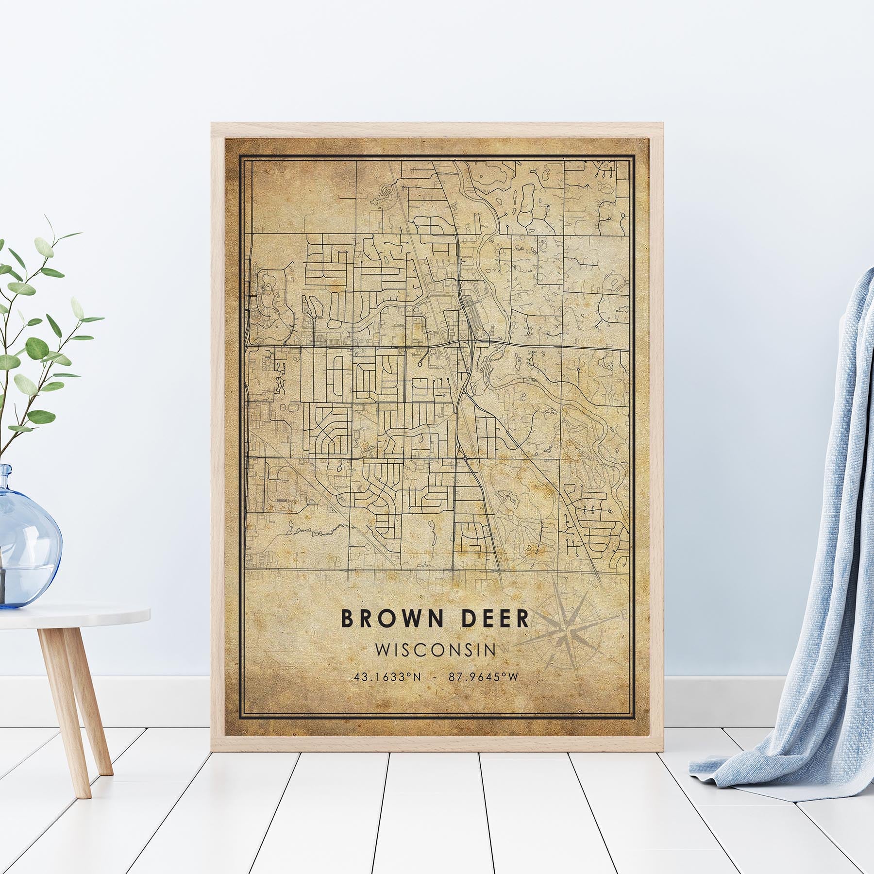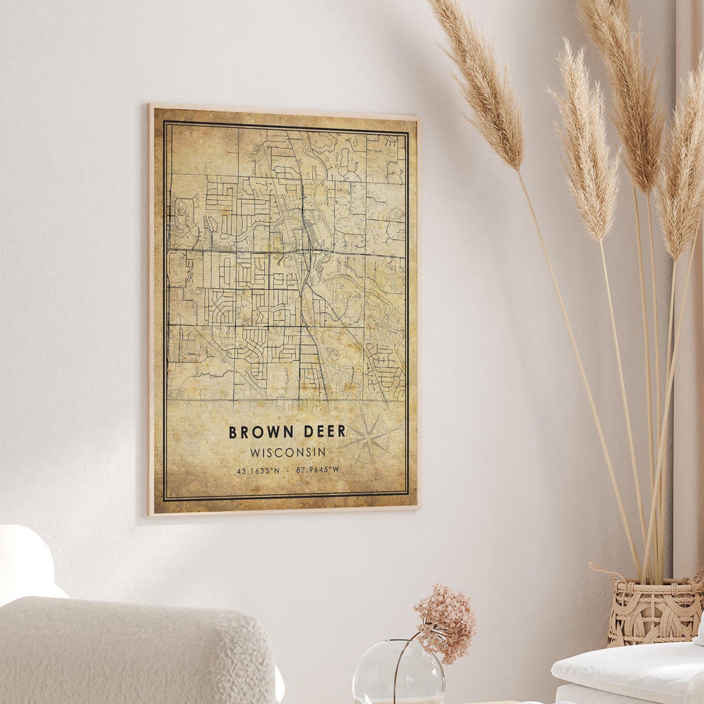 Brown Deer, Wisconsin Vintage Style Map Print