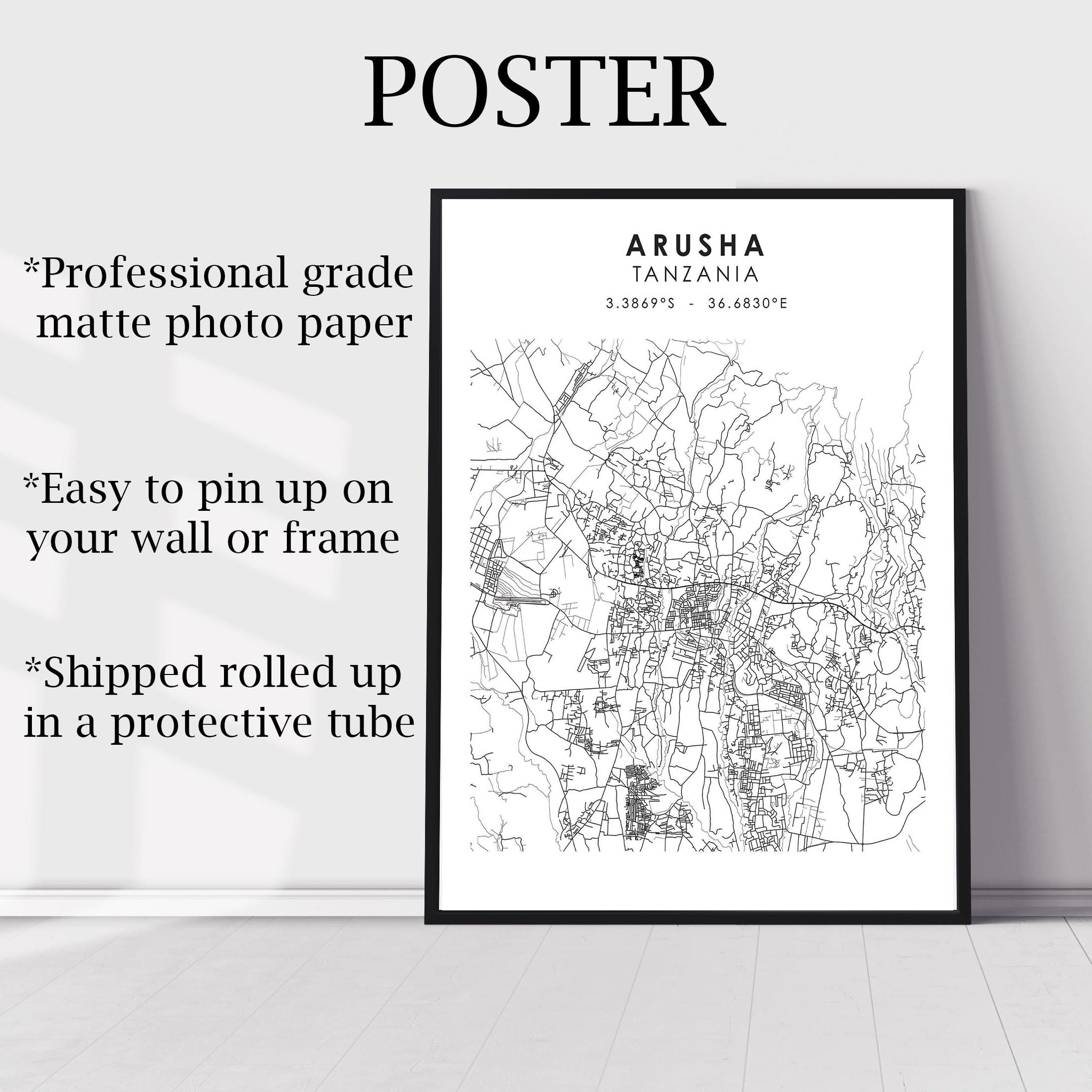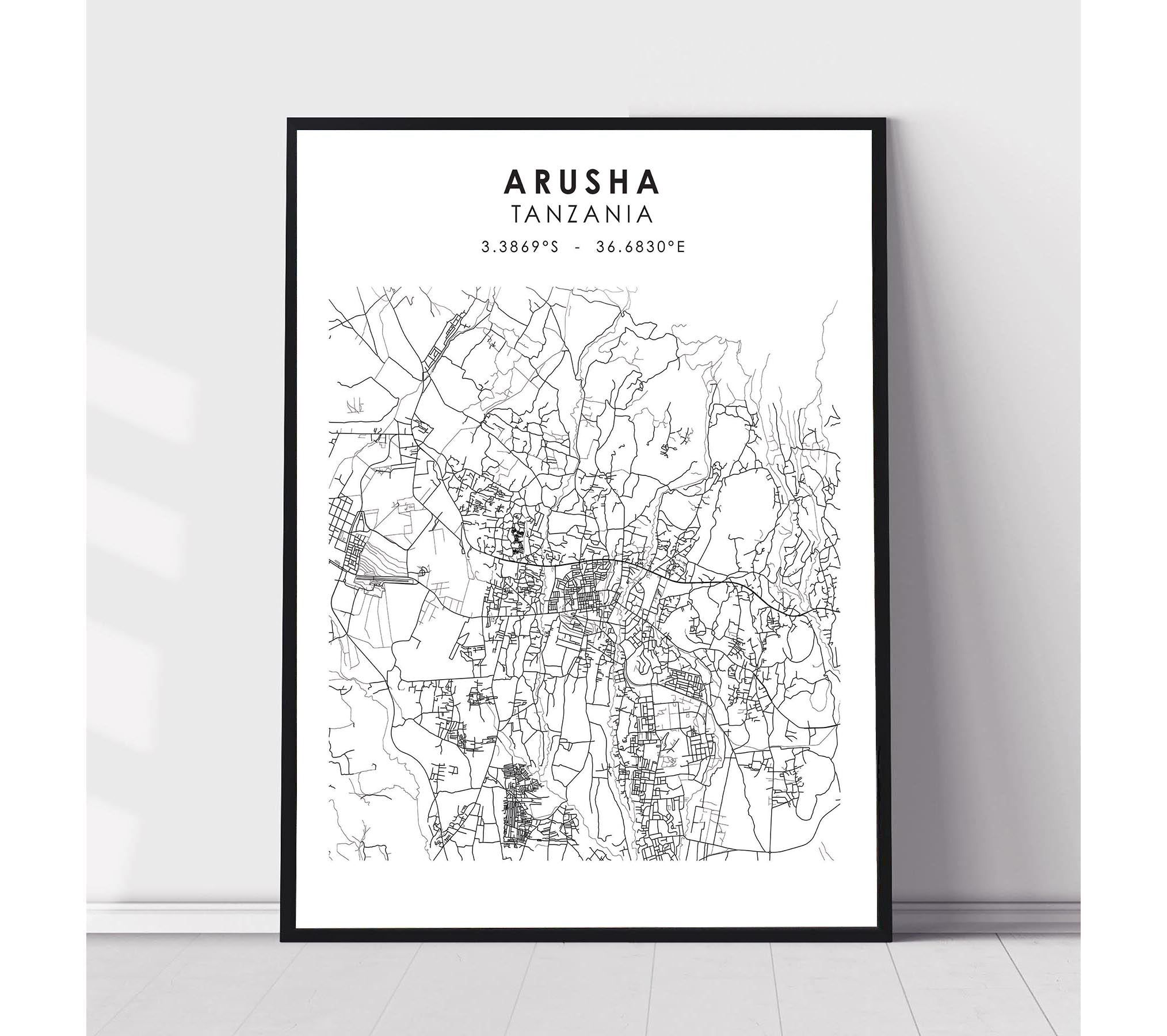 Arusha, Tanzania Scandinavian Style Map Print