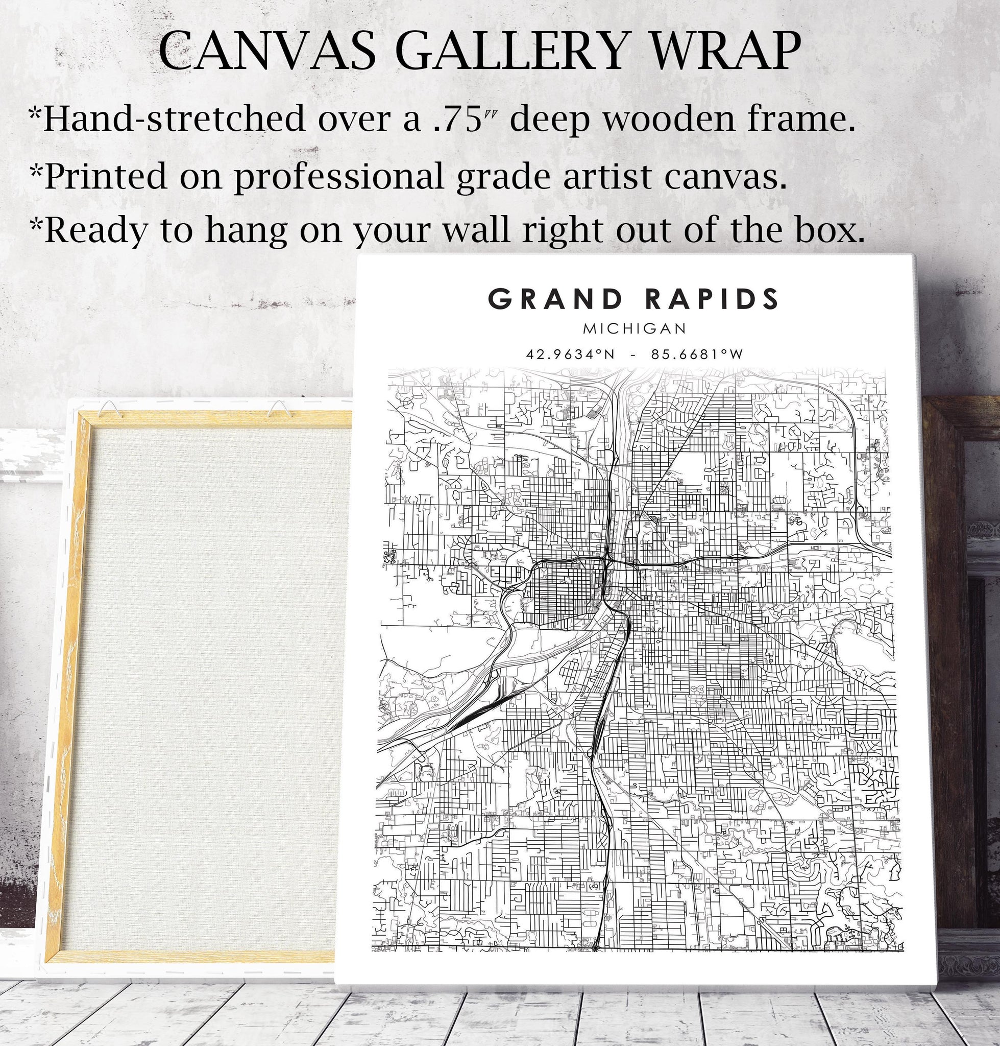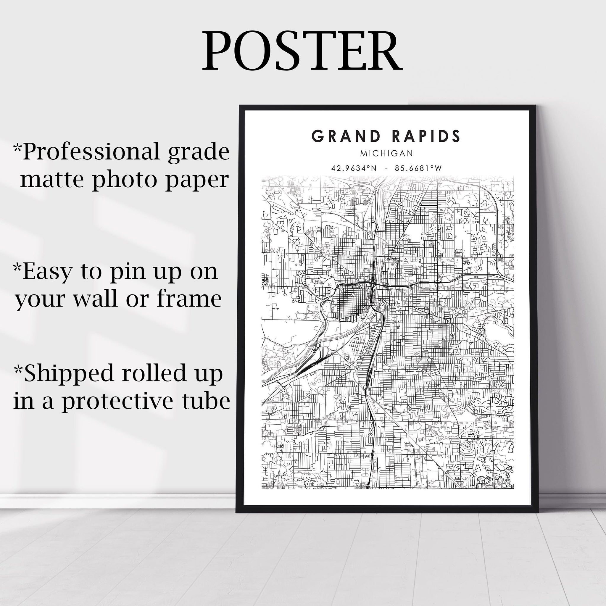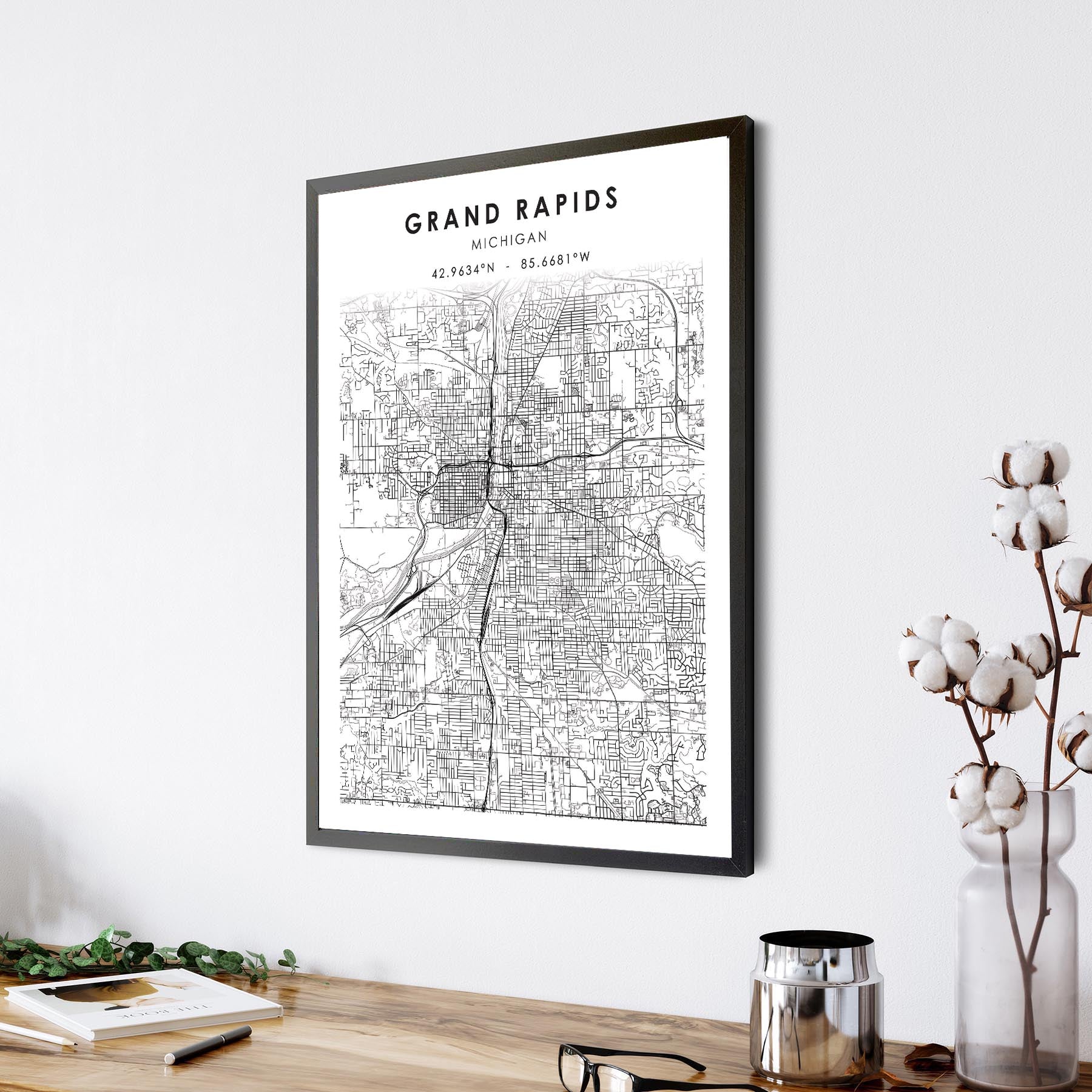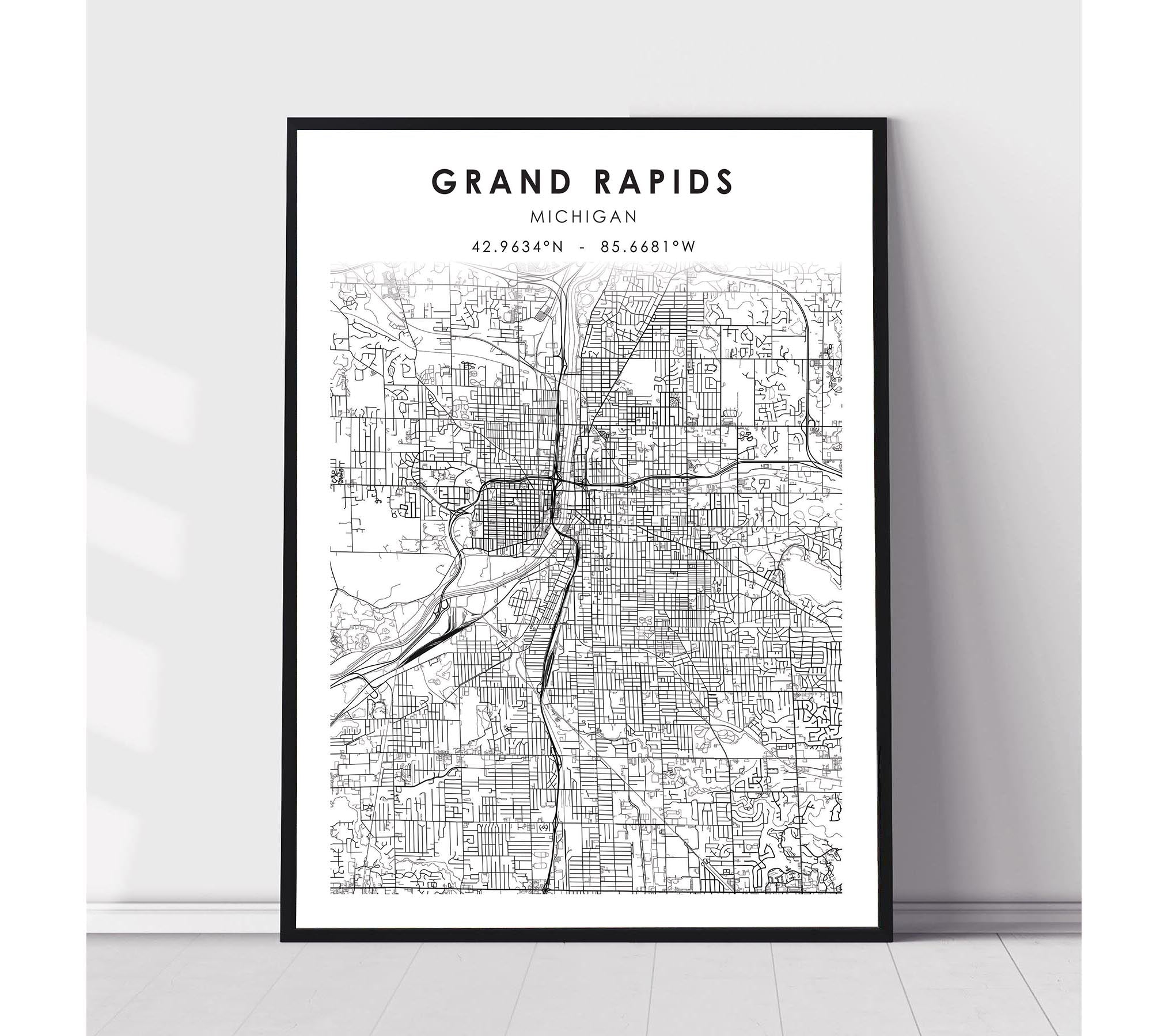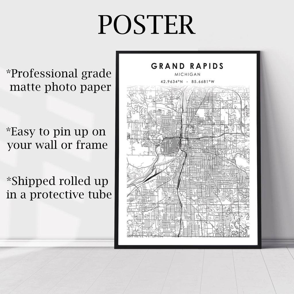 Grand Rapids, Michigan Scandinavian Map Print