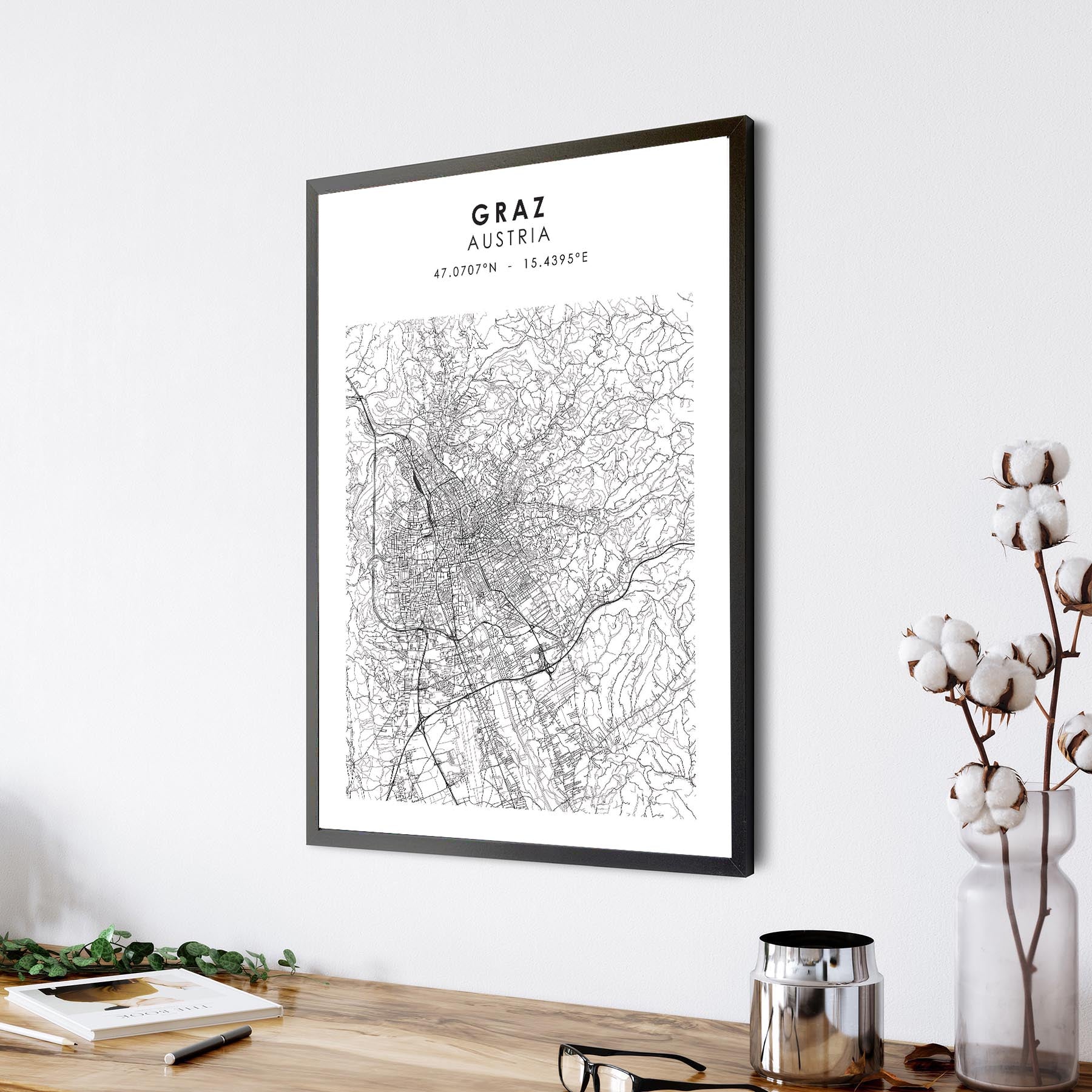 Graz, Austria Scandinavian Style Map Print